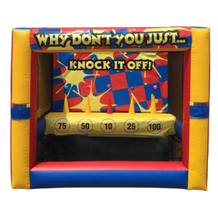 Throw a ball and try to knock the 5 floating balls off their stands. Includes 5 balls, test your luck today!