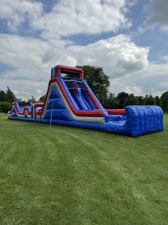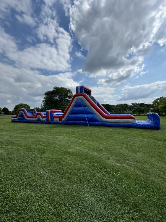 87' Marble Climb, Crawl, Jump, and Slide Obstacle Challenge, is great for picnics, school carnivals, team building events, spring flings, and any type of party or event that needs a challenge. The obstacle course has a 87' long challenge course attached to a High Rock Climb Slide, so participants can test their stamina, agility, and climbing skills all at once on this awesome obstacle course!